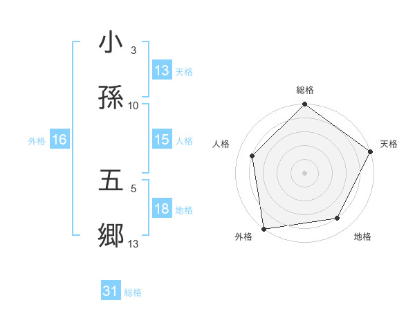 小孫 五郷さんを姓名の画数から五運を鑑定
