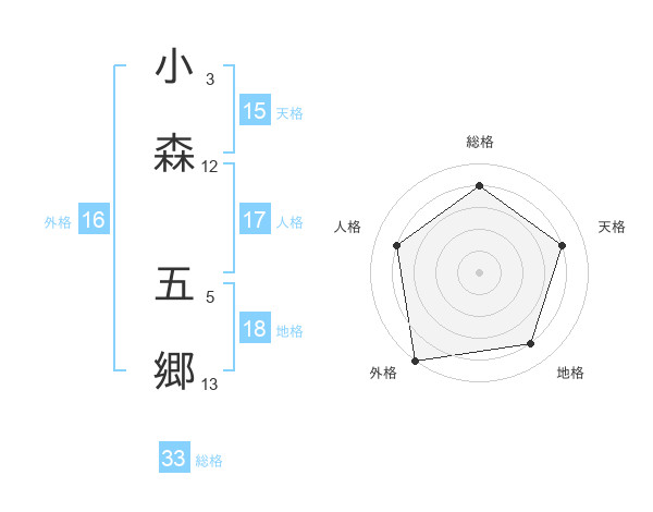 小森 五郷さんの総格は33画の4点!