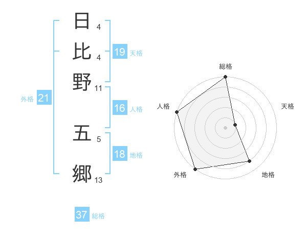 日比野 五郷さんを姓名の画数から五運を鑑定