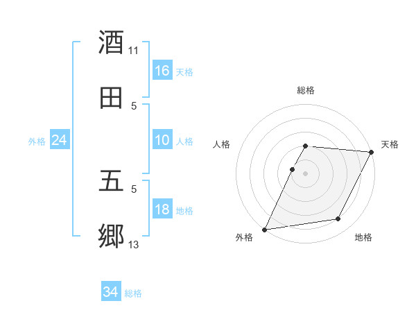 酒田 五郷さんの総格は34画の2点!