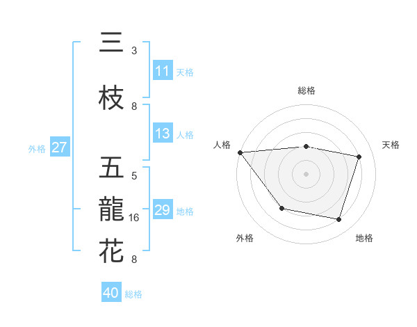 三枝 五龍花さんを姓名の画数から五運を鑑定