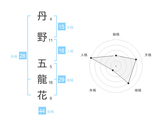 丹野 五龍花さんを姓名の画数から五運を鑑定