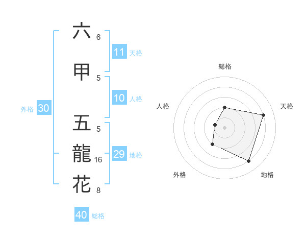 六甲 五龍花さんの総格は40画の2点!