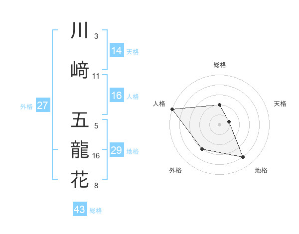 川﨑 五龍花さんの総格は43画の2点!