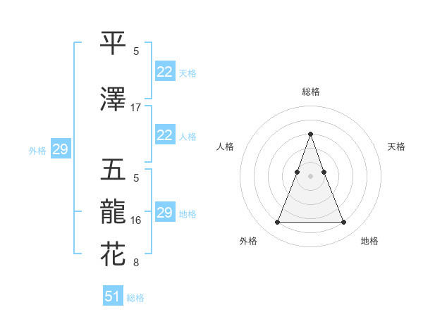平澤 五龍花さんの天格は22画の1点!