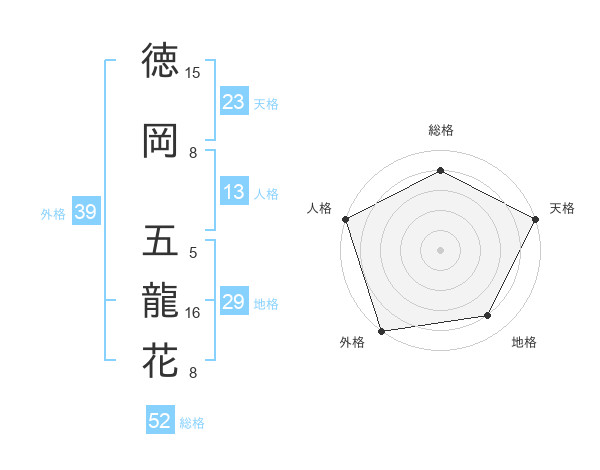 徳岡 五龍花さんを姓名の画数から五運を鑑定