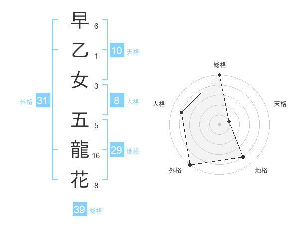早乙女 五龍花さんを姓名の画数から五運を鑑定