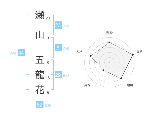 瀬山 五龍花さんの総格は52画の4点!