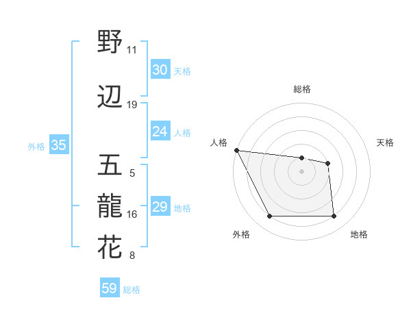 野辺 五龍花さんの総格は59画の1点!