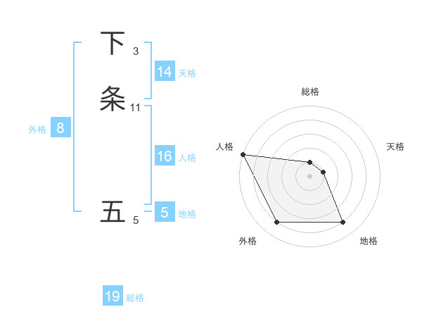 下条 五さんの総格は19画の1点!