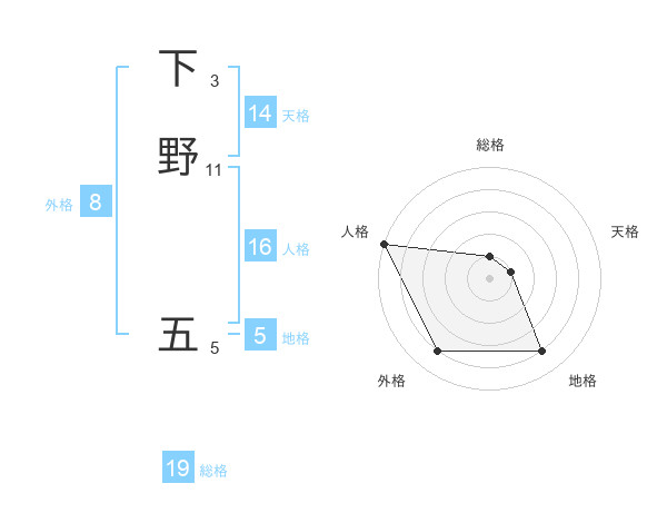 下野 五さんの総格は19画の1点!
