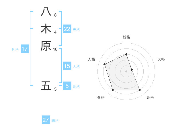八木原 五さんの総格は27画の3点!