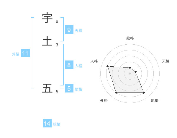 宇土 五さんの外格は11画の4点!