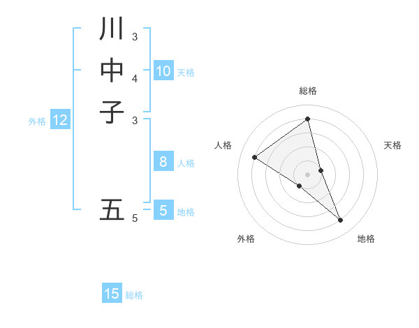 川中子 五さんの総格は15画の4点!