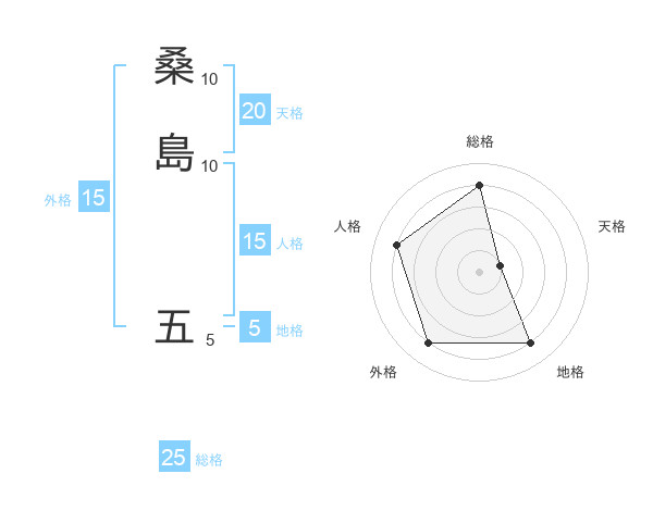 桑島 五さんの総格は25画の4点!