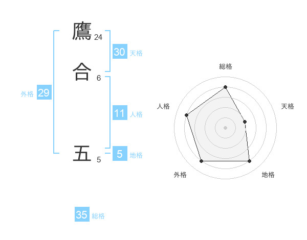 鷹合 五さんの総格は35画の4点!