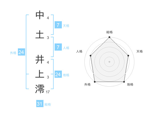 中土 井上澪さんを姓名の画数から五運を鑑定