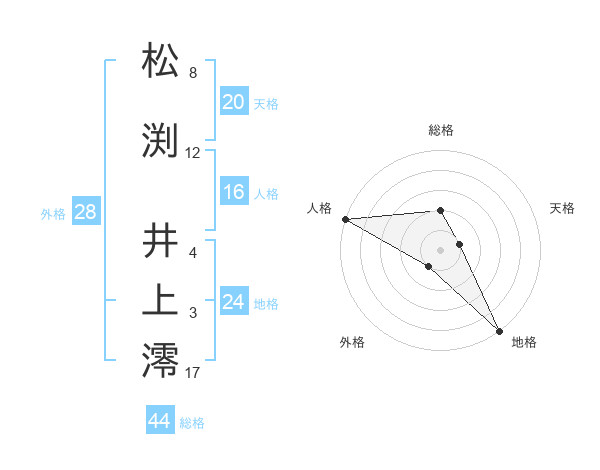松渕 井上澪さんを姓名の画数から五運を鑑定