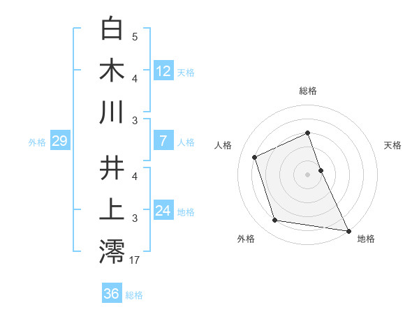 白木川 井上澪さんを姓名の画数から五運を鑑定