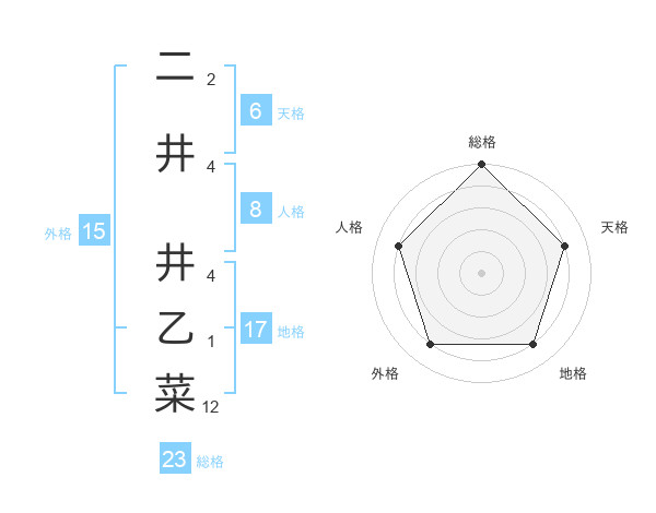 二井 井乙菜さんの総格は23画の5点!