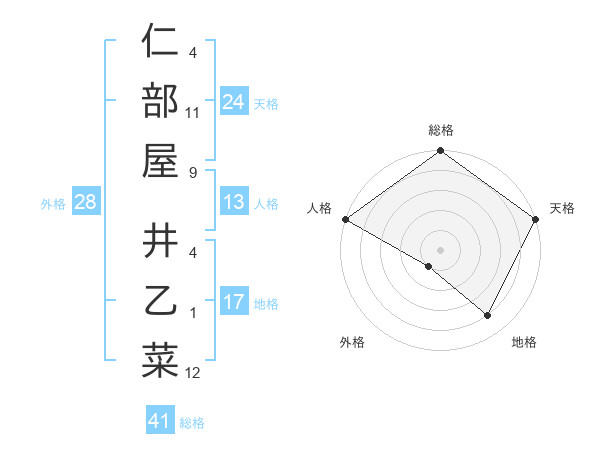 仁部屋 井乙菜さんを姓名の画数から五運を鑑定