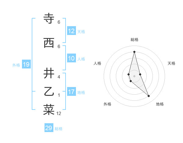 寺西 井乙菜さんを姓名の画数から五運を鑑定