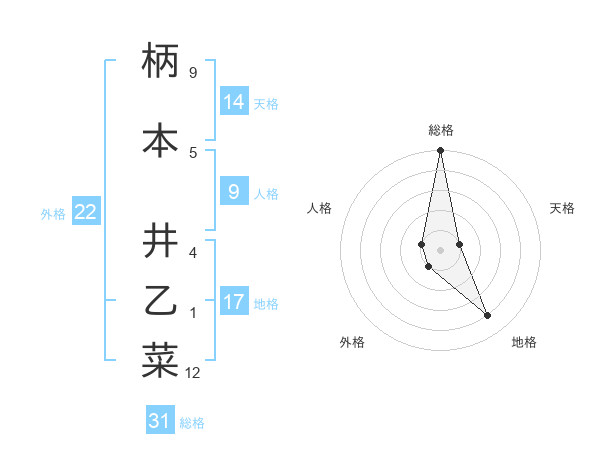 柄本 井乙菜さんを姓名の画数から五運を鑑定