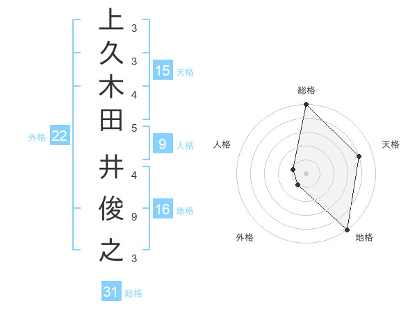 上久木田 井俊之さんを姓名の画数から五運を鑑定