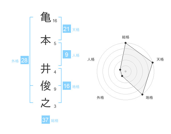 亀本 井俊之さんの総格は37画の5点!