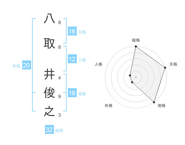 八取 井俊之さんを姓名の画数から五運を鑑定
