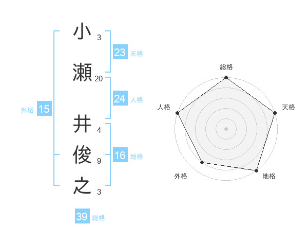 小瀬 井俊之さんを姓名の画数から五運を鑑定