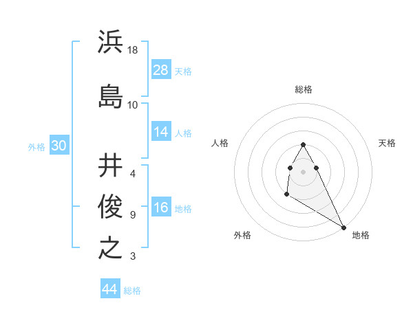 浜島 井俊之さんを姓名の画数から五運を鑑定