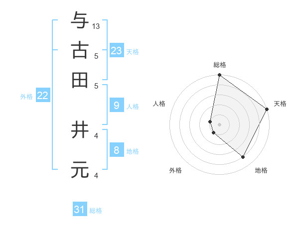 与古田 井元さんの天格は23画の5点!