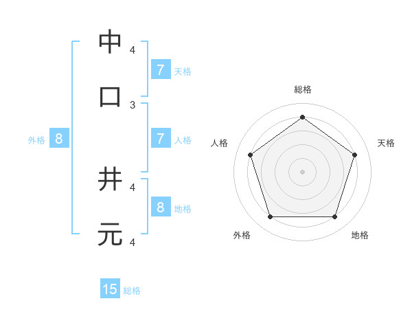 中口 井元さんの地格は8画の4点!