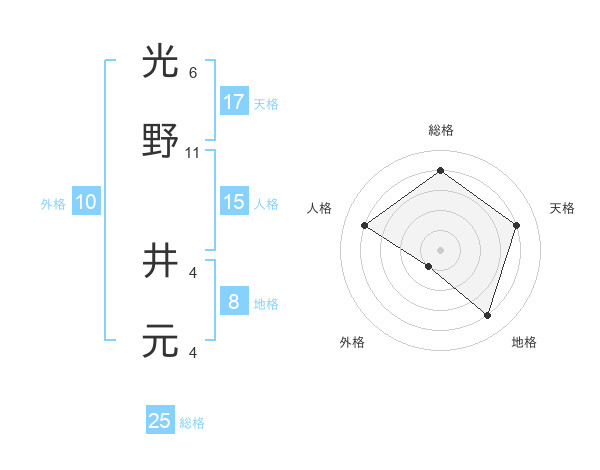 光野 井元さんの天格は17画の4点!