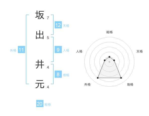 坂出 井元さんの総格は20画の1点!