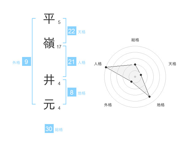 平嶺 井元さんを姓名の画数から五運を鑑定