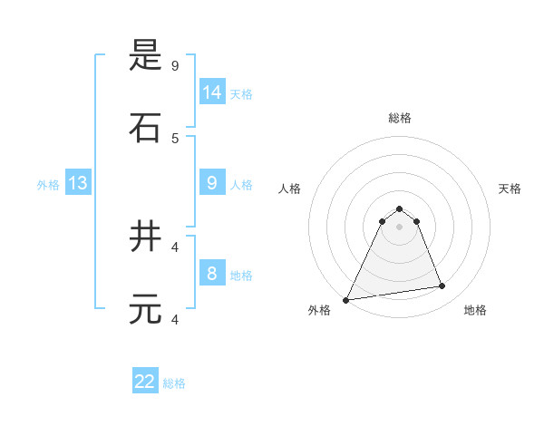 是石 井元さんの総格は22画の1点!