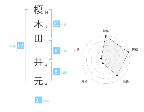 榎木田 井元さんの総格は31画の5点!