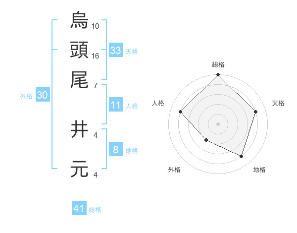 烏頭尾 井元さんを姓名の画数から五運を鑑定