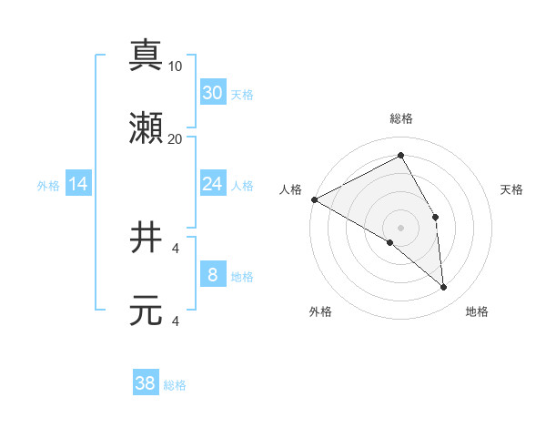 真瀬 井元さんを姓名の画数から五運を鑑定