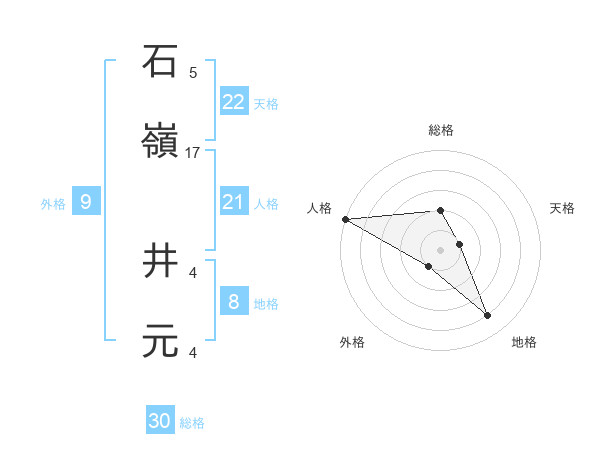 石嶺 井元さんの総格は30画の2点!