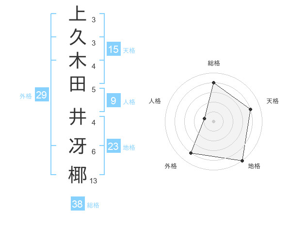 上久木田 井冴椰さんの総格は38画の4点