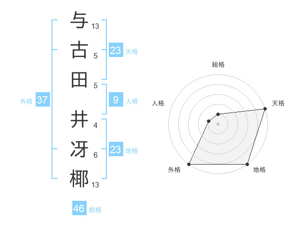 与古田 井冴椰さんの天格は23画の5点!