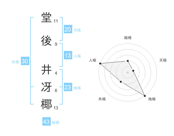 堂後 井冴椰さんの総格は43画の2点!