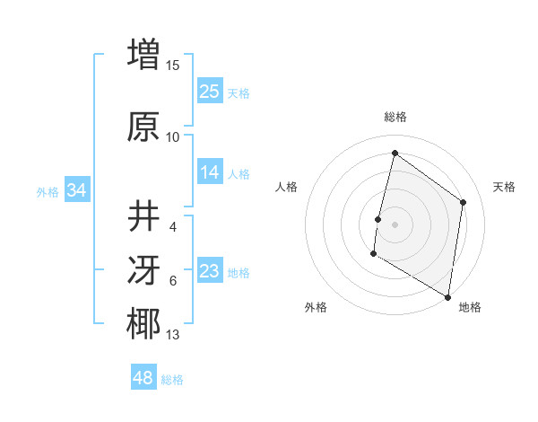 増原 井冴椰さんの地格は23画の5点!