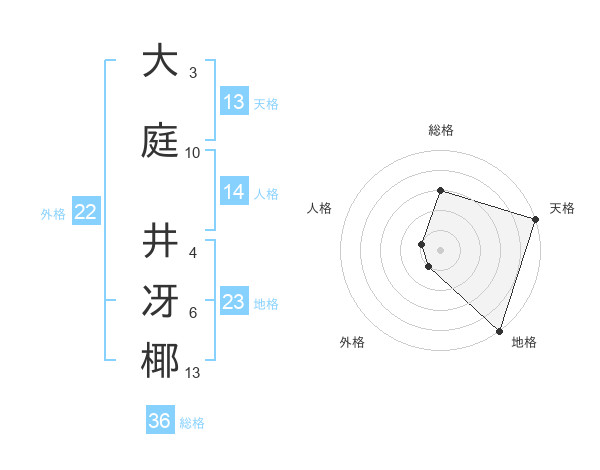 大庭 井冴椰さんを姓名の画数から五運を鑑定