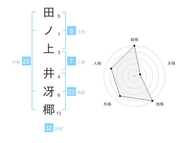 田ノ上 井冴椰さんを姓名の画数から五運を鑑定