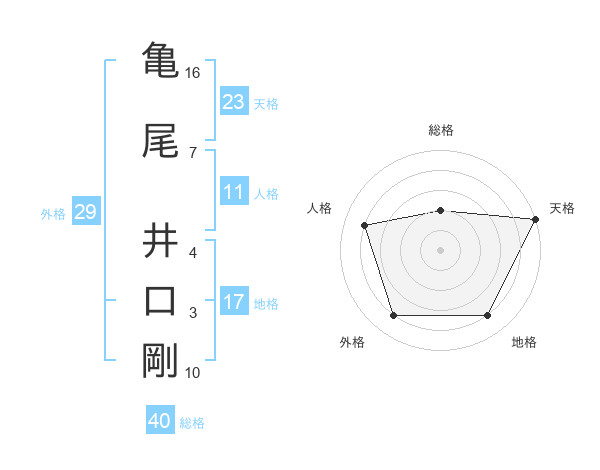 亀尾 井口剛さんの総格は40画の2点!