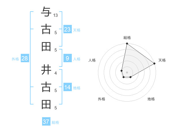 与古田 井古田さんを姓名の画数から五運を鑑定